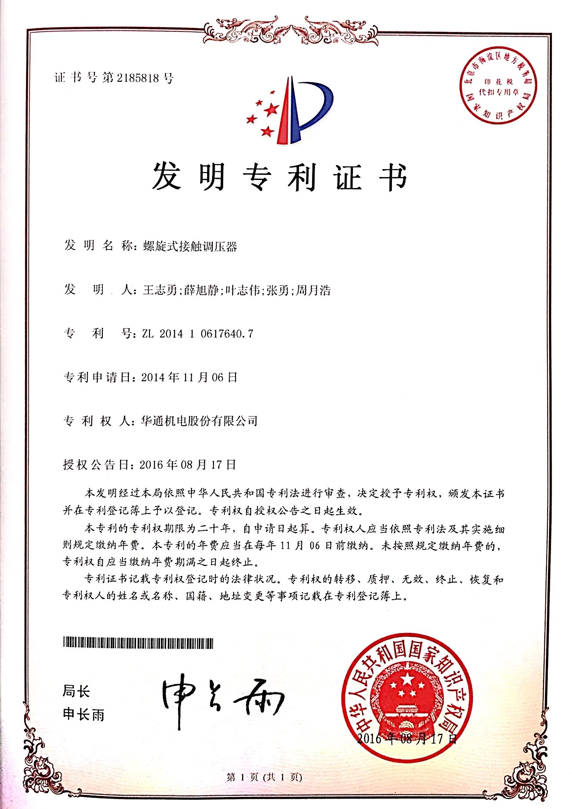 發(fā)明專利:螺旋式接觸調(diào)壓器