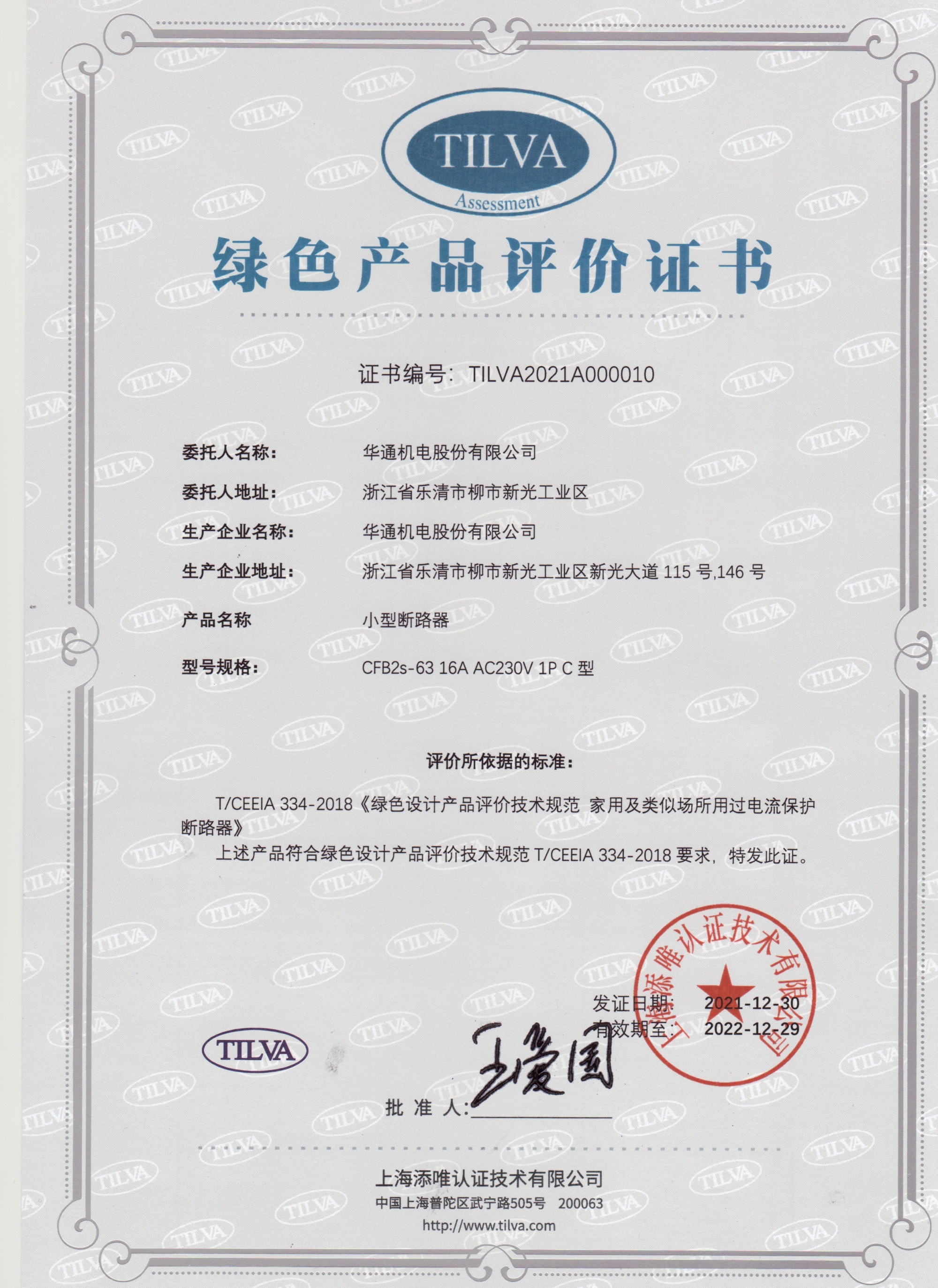 綠色產(chǎn)品評價證書