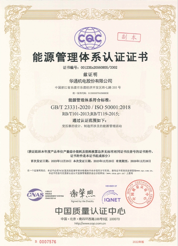華通機電能源體系證書