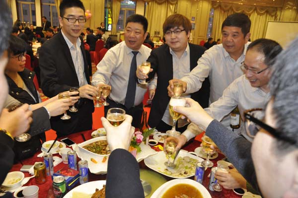 會(huì)后,舉行了晚宴,公司領(lǐng)導(dǎo)與員工在一片歡聲笑語中推杯換盞、觥籌交錯(cuò),互道吉祥、互賀新春。(徐剛)