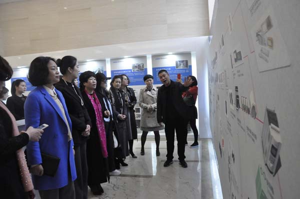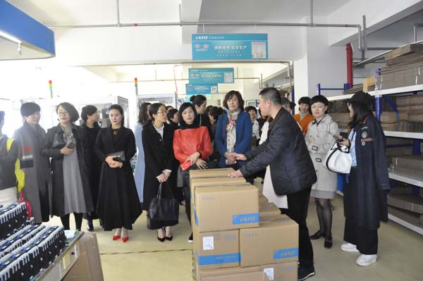 由于考察團(tuán)的客人們均是婦聯(lián)領(lǐng)導(dǎo)及女企協(xié)商界麗人,公司今天的廠(chǎng)區(qū)形成了一道靚麗的風(fēng)景線(xiàn),客人們先后參觀了一樓智能化、電子化展廳、電氣分公司小型、接融器自動(dòng)化生產(chǎn)線(xiàn)。在參觀考察電氣分公司車(chē)間時(shí),楊素丹、倪瑞瑾兩位主席對(duì)公司的智能化產(chǎn)品及自動(dòng)化生產(chǎn)線(xiàn)均表達(dá)了贊美,其他商界麗人們均對(duì)車(chē)間的管理氛圍、硬件設(shè)施表達(dá)了贊許,部分客人對(duì)于寬敞明亮的車(chē)間、精美模塊化的產(chǎn)品、高度自動(dòng)化的生產(chǎn)線(xiàn)不停的用手機(jī)拍照。