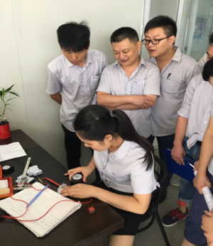 本次活動為期一天,共10多名檢驗(yàn)員參加活動,內(nèi)容涉及鍍層測量、硬度測量、彈簧壓力測試、外殼阻燃試驗(yàn)、斷路器特性測試、觸頭銀點(diǎn)含量測試、斷路器等成品延時特性、觸頭壓力及超程測試、銅排導(dǎo)電率測量、耐壓機(jī)等設(shè)備運(yùn)行檢查測試等共計(jì)10項(xiàng),認(rèn)真做到人人動手檢測,相互學(xué)習(xí)交流,努力提升檢測水平。