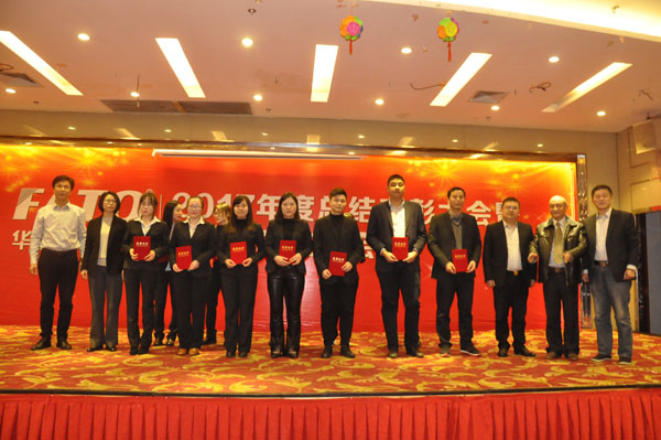 1月27日,華通機電股份2017年總結(jié)表彰暨2018年工作會議在時代富豪·夏威夷大酒店時代廳隆重召開。公司各部門行政人員、各生產(chǎn)公司中層以上干部及中級以上職稱人員、優(yōu)秀華通人、優(yōu)秀經(jīng)理人等共200人參加會議。公司領(lǐng)導(dǎo)李成文、張龍松、黃賢福、李成倫、高賽春、陳永敏、李茂豐、高賽琴、高文樂、吳俊利、陳前進等出席會議。會議由趙曉斌主持。