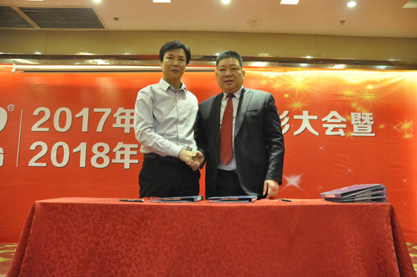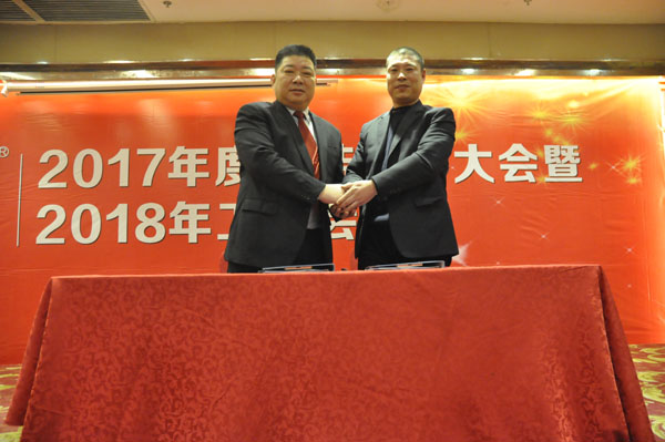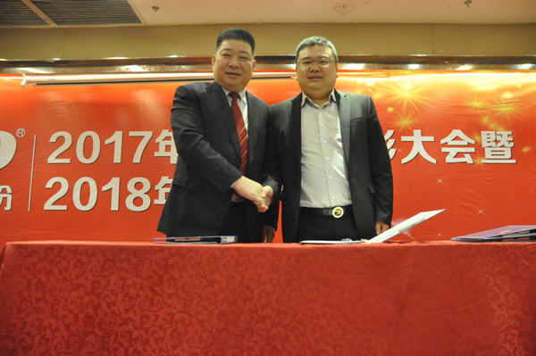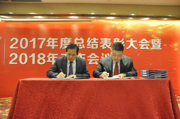 張龍松(右)與吳俊利(左)簽訂銷售績效考核協(xié)議