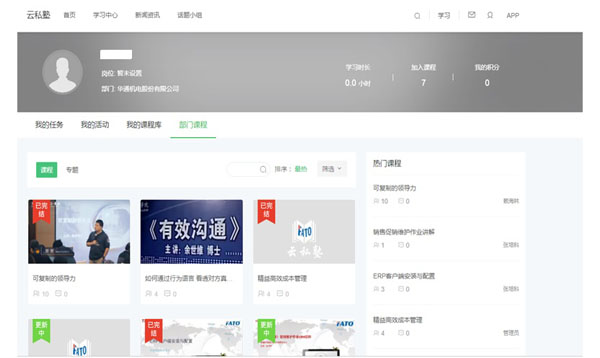 華通機(jī)電股份“云私塾”網(wǎng)絡(luò)學(xué)院學(xué)習(xí)中心分信息類、財(cái)稅類、營銷類、生產(chǎn)管理類、技術(shù)研發(fā)類、人力資源、質(zhì)量管理類等七大類型公共課程,內(nèi)容豐富。每位員工可根據(jù)單崗位的不同,會分配相應(yīng)的學(xué)習(xí)任務(wù),員工也可根據(jù)自己興趣去選擇一些課程加入到自己的課程庫,每位員工登錄學(xué)習(xí)后,系統(tǒng)會自動記錄學(xué)習(xí)時長,還會給予相應(yīng)的積分。云私塾的建立,很好的解決了員工培訓(xùn)時間沖突、異地培訓(xùn)等問題。尤其是新入職員工可以通過自主學(xué)習(xí),快速了解公司文化及掌握崗位相關(guān)知識技能。另外,平臺還設(shè)有新聞資訊、話題小組等其它板塊內(nèi)容。