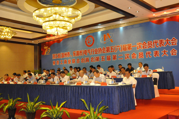 9月23日下午,浙江省(溫州市、樂清市)電氣行業(yè)協(xié)會第五(六)屆第一次會員代表大會暨柳市工商業(yè)聯(lián)合會(商會)第五屆第二次會員代表大會在柳市新聚豐園大酒店隆重召開。省、市三級電氣行業(yè)協(xié)會副會長、理事、會員及嘉賓、新聞媒體等共400多人參加大會。浙江省中小企業(yè)服務(wù)中心主任劉兵、溫州市副市長汪馳、樂清市委常委、柳市鎮(zhèn)黨委書記董慶標(biāo)、華通機(jī)電股份總裁兼黨委書記張龍松等出席。