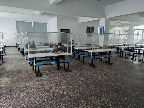 一是嚴(yán)把人員關(guān)。要求復(fù)工員工全部持綠色健康碼,持黃碼、紅碼員工暫緩返企返崗;二是嚴(yán)把入口關(guān)。公司在新光總部、新光工業(yè)園區(qū)及鹽盤工業(yè)區(qū)廠區(qū)入口處對入廠人員進(jìn)行健康碼檢查和體溫測量,并認(rèn)真檢測記錄,中午員工就餐前也在餐廳入口設(shè)置卡點(diǎn)進(jìn)行體溫測量。另外,在廠區(qū)入口并對車輛、人員鞋底進(jìn)行消毒;三是嚴(yán)把防護(hù)關(guān)。公司給員工免費(fèi)發(fā)放口罩,要求員工白天上班除就餐外,一律佩戴口罩。食堂就餐單人單桌,分批錯時就餐,并且下班后嚴(yán)格遵守“兩點(diǎn)一線”,禁止隨意外出;四是嚴(yán)把通風(fēng)消毒關(guān)。每天安排專人落實(shí)上班期間的辦公場所、車間的通風(fēng)工作,以及整個辦公、生產(chǎn)場所及廠區(qū)的消毒工作。