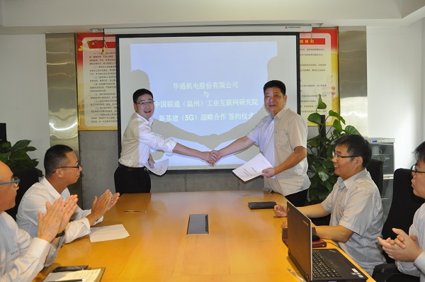近日,華通機電股份與中國聯通(溫州)工業(yè)互聯網研究院攜手戰(zhàn)略合作新基建,簽約儀式在公司二樓會議室隆重舉行。中國聯通(溫州)工業(yè)互聯網研究院院長谷澄鈞、工程師夏茂林親臨簽約。公司領導張龍松、李茂豐、吳俊利、高文樂等出席簽約儀式。