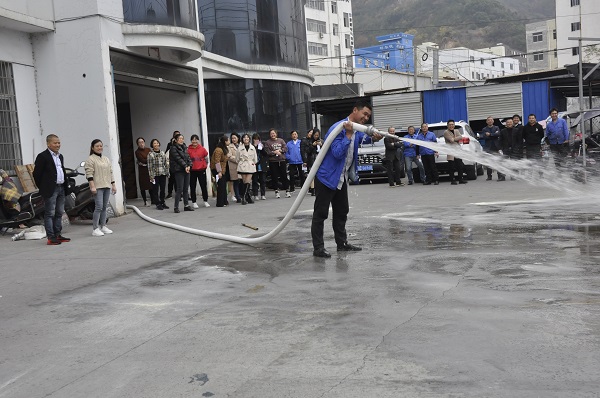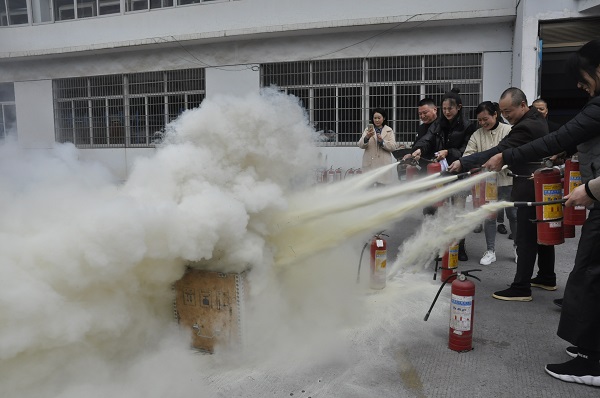 接著,公司消防管理員張心軍先后講解滅火器、消火栓的使用方法和技巧。為讓參演人員切實(shí)掌握滅火技能,特用木塊燃起大火摸擬火場,讓每一位參演人員直面火場,親身感受用滅火器滅火的場景?;饒鲆淮未吸c(diǎn)燃的大火,隨著升起白色的煙霧一次次的被參演人員用滅火器秒殺熄滅。隨后,還專門練習(xí)了消火栓的使用,當(dāng)一位消防員奮力扛起噴水的水槍對(duì)假想火場進(jìn)行激情“掃射”時(shí),現(xiàn)場叫好聲、掌聲響成一片。