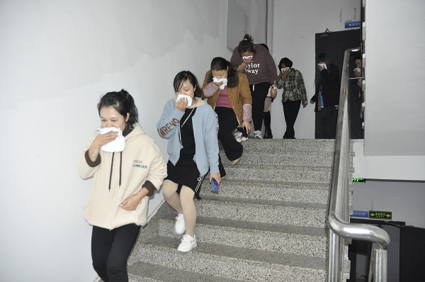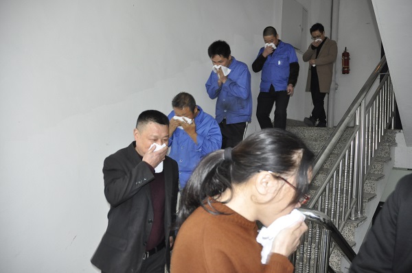 最后,模擬一號(hào)樓四樓車間出現(xiàn)火情,警報(bào)響起,所有參演人員立即在疏導(dǎo)員的引導(dǎo)下,從該車間的安全通道進(jìn)行緊急疏散。只見參演人員秩序井然,按照所學(xué)疏散逃生技能,個(gè)個(gè)貓著腰,用毛巾捂住口鼻,快速有序的緊貼安全通道右側(cè)向廠區(qū)撤離,一個(gè)個(gè)表情嚴(yán)肅,好象正在身臨火場逃生的感覺,并且都迅速撤離到了廠區(qū),疏散演練效果明顯。