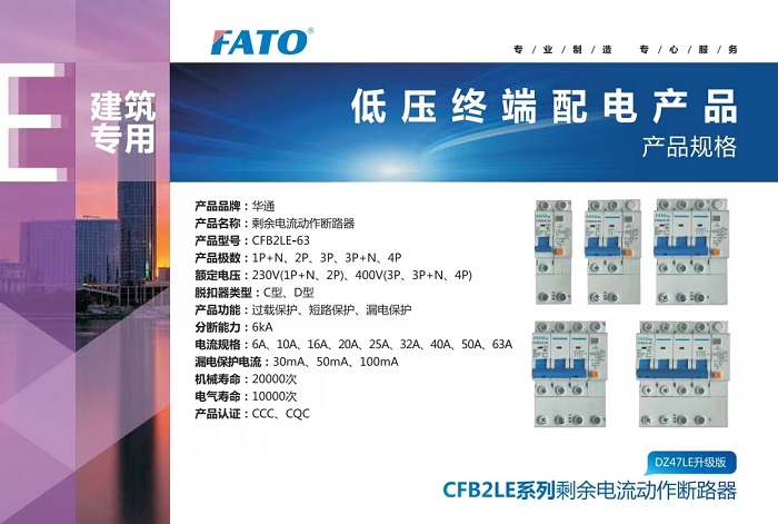 華通自主研發(fā)的CFB2LE系列剩余電流動(dòng)作斷路器,是一種家用或類似用途的剩余電流動(dòng)作斷路器,針對(duì)建筑類使用場所,作為終端電氣線路的漏電保護(hù)裝置,主要保護(hù)人身安全、防止電氣類火災(zāi)、電氣設(shè)備損壞等的一種保護(hù)電器。其外觀精美,低碳環(huán)保,綜合性能安全可靠,已廣受用戶的肯定和好評(píng)。